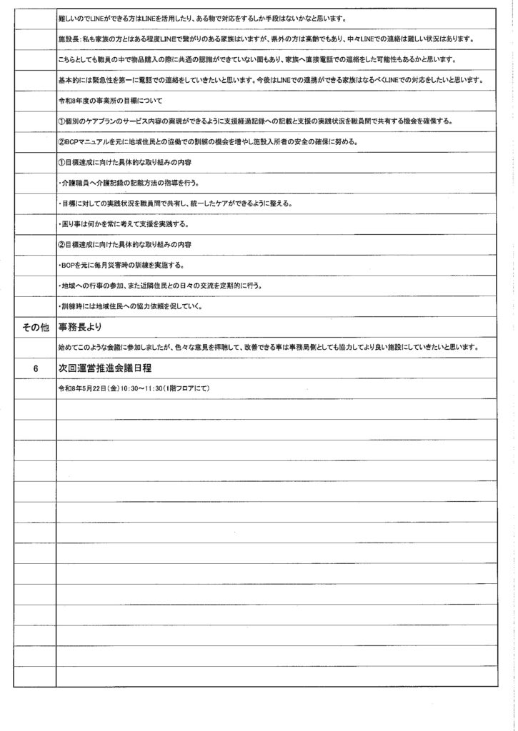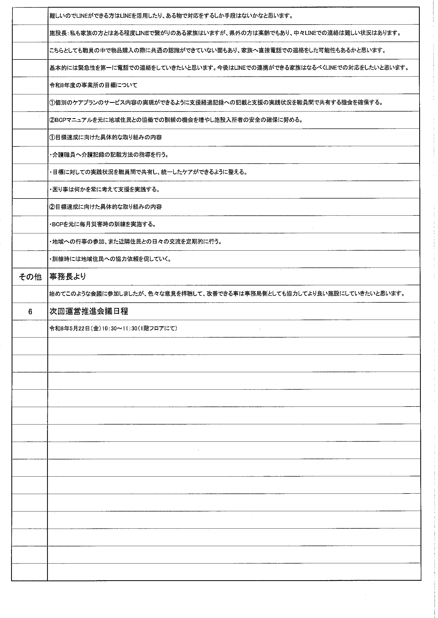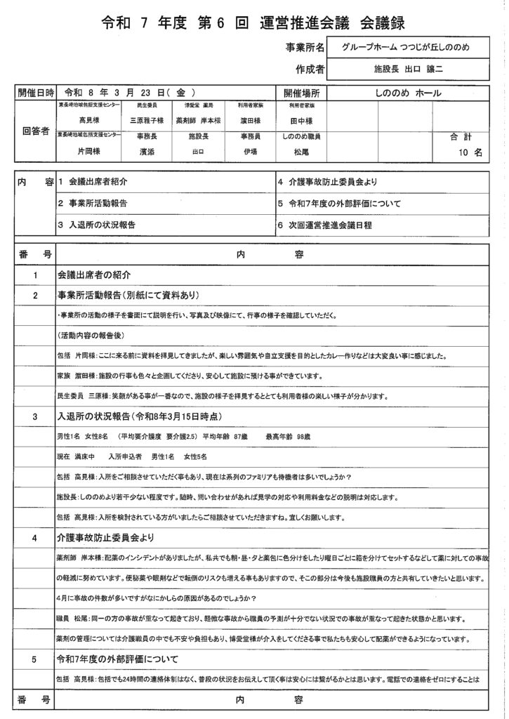 つつじが丘しののめお知らせ 令和7年度第6回運営推進会議を開催いたしました。 2026.04.07 令和8年3月23日(金)に令和7年度第6回運営推進会議を開催いたしました。 この記事のタイトルとURLをコピーする 令和7年度第5回運営推進会議を開催いたしました。 前の記事