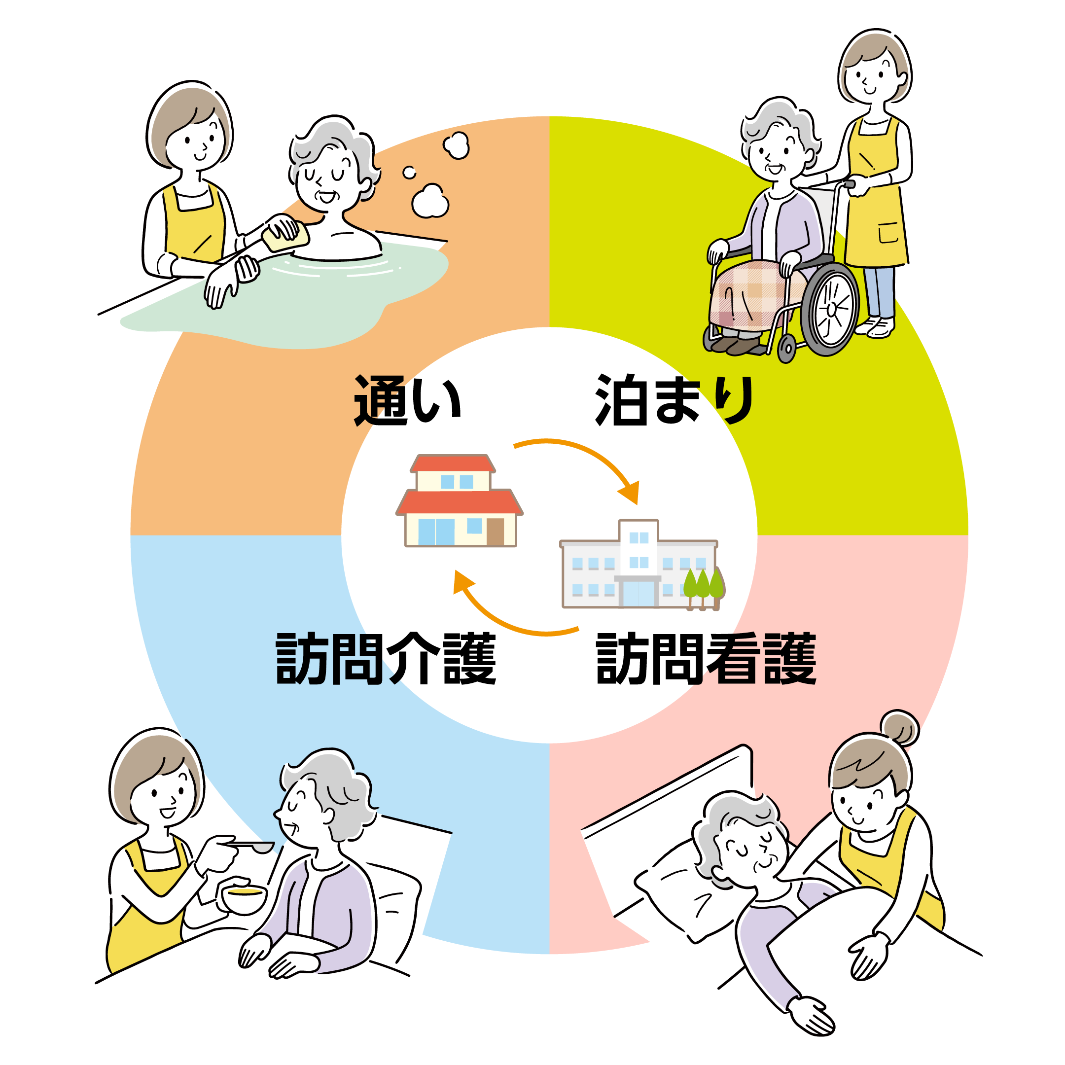 通い・泊まり・訪問介護・訪問看護の介護と看護を総合的に提供する介護保険サービスのことです。